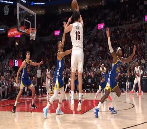 比赛最精彩的时刻之一出现在第三节,当时杨瀚森在三分线外获得机会,他毫不犹豫地出手,篮球划出一道优美弧线空心入网,这记三分帮助开拓者将比分扳平,瞬间点燃了全场观众的热情;然而,好戏还在后头,仅仅10秒之后,在勇士队的进攻回合,库里在几乎相同的位置,以一记标志性的快速三分还以颜色,这一来一往的三分对飙,让比赛的戏剧性达到了顶点,也成为全场最令人难忘的瞬间之一,这一镜头在赛后迅速传播,“杨瀚森库里互飙三分”甚至冲上了热搜榜,引发了球迷们的热烈讨论